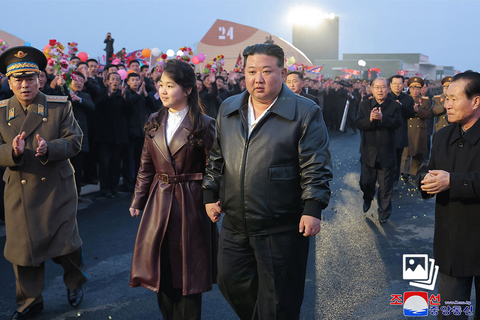 当地时间2024年3月15日,朝鲜平壤,朝鲜最高领导人金正恩(中右)和他的女儿金主爱(中左)出席江东综合温室的竣工和启用仪式。朝中社在16日的报道使用“伟大的领路人们和党政军干部们一起参观了江东综合温室”这一表述。新加坡《联合早报》称,“领路人”这个尊称向来只用于朝鲜高级领导人。图:视觉中国 |